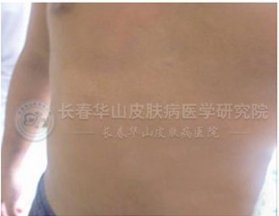这周田某来复诊的时候胸部、腹部、手臂的牛皮癣统统都消失了,而且不再瘙痒,不再有皮屑脱落。田某说自己这么多年来压在心里的大石头终于放下了。“红皮肚子”没有了,整个人也轻松快乐了许多,夏天再也不用穿的那么多来隐藏自己了!